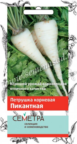 Пряная культура, богатая витаминами и минеральными солями. Среднеспелая корневая петрушка с отличными вкусовыми качествами корнеплода, период от полных всходов до технической спелости 95-105 дней. Розетка листьев полувертикальная. Корнеплод средний, обратнотреугольной формы, белый. Масса корнеплода 30-100 г. Ароматичность зелени хорошая. Рекомендуется для использования в домашней кулинарии и хранения.